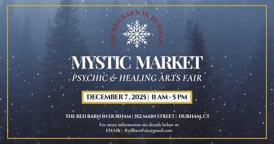#MysticMarketCT #RedBarnFair #PsychicFairCT #HealingArts #SpiritualWellness #TarotReading #EnergyHealing #ConnecticutEvents #HolisticFair #ReikiCT, #QiGongCT #IntuitiveHealing #HolidayMarketCT #CrystalHealing #OracleCards #MindBodySpirit #RedBarnDurham